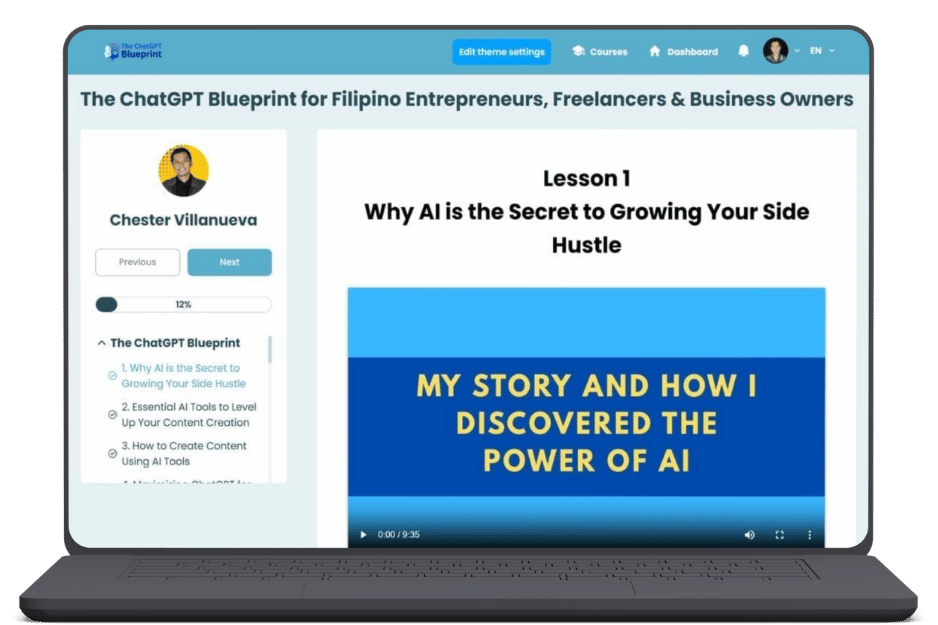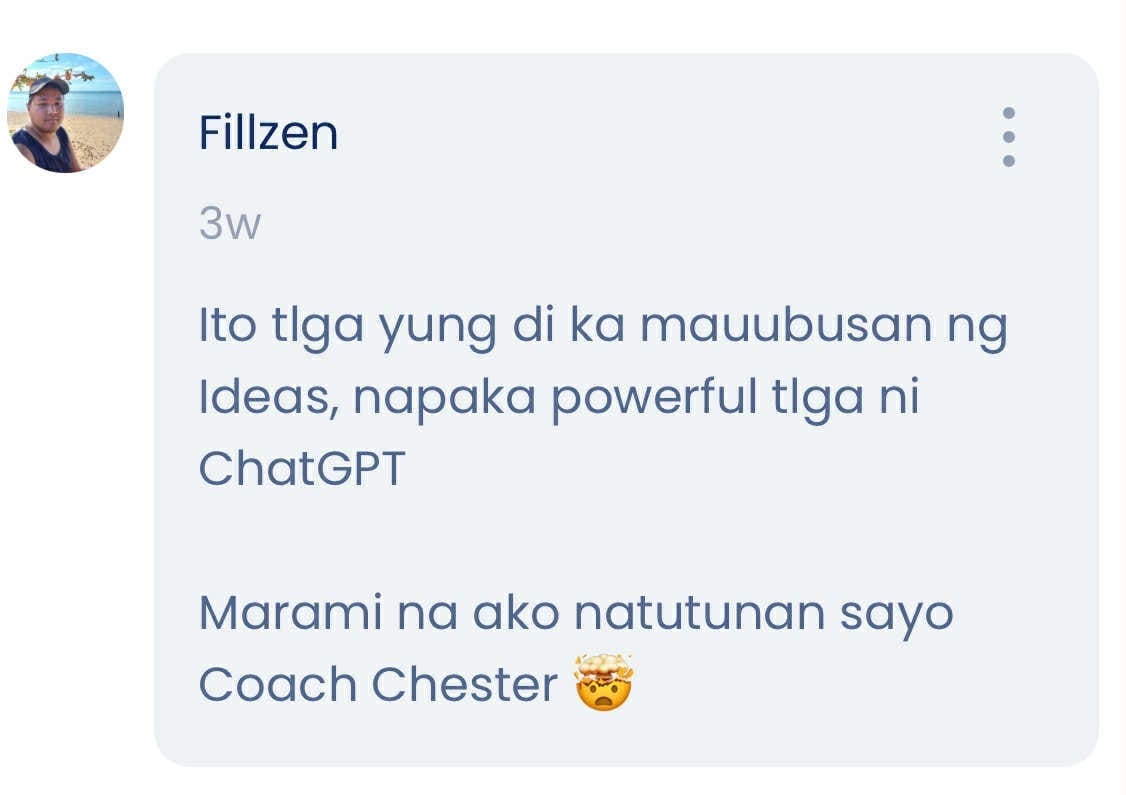 Hi! Ako si Chester. Na-discover ko ang power ng AI tools noong 2023 at simula noon, tinulungan ko na ang libo-libong Pinoy na mag-start ng kanilang online income gamit ang ChatGPT at iba pang AI tools.